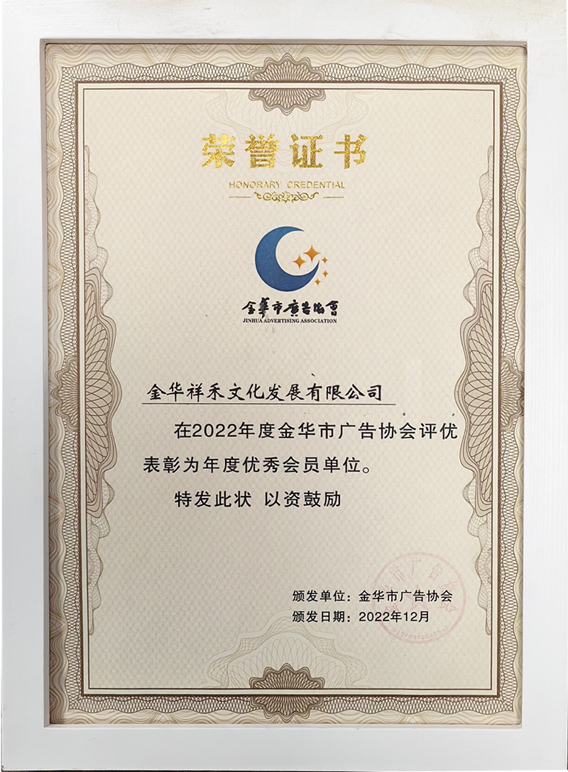 金華市廣告協(xié)會2022年度優(yōu)秀會員單位